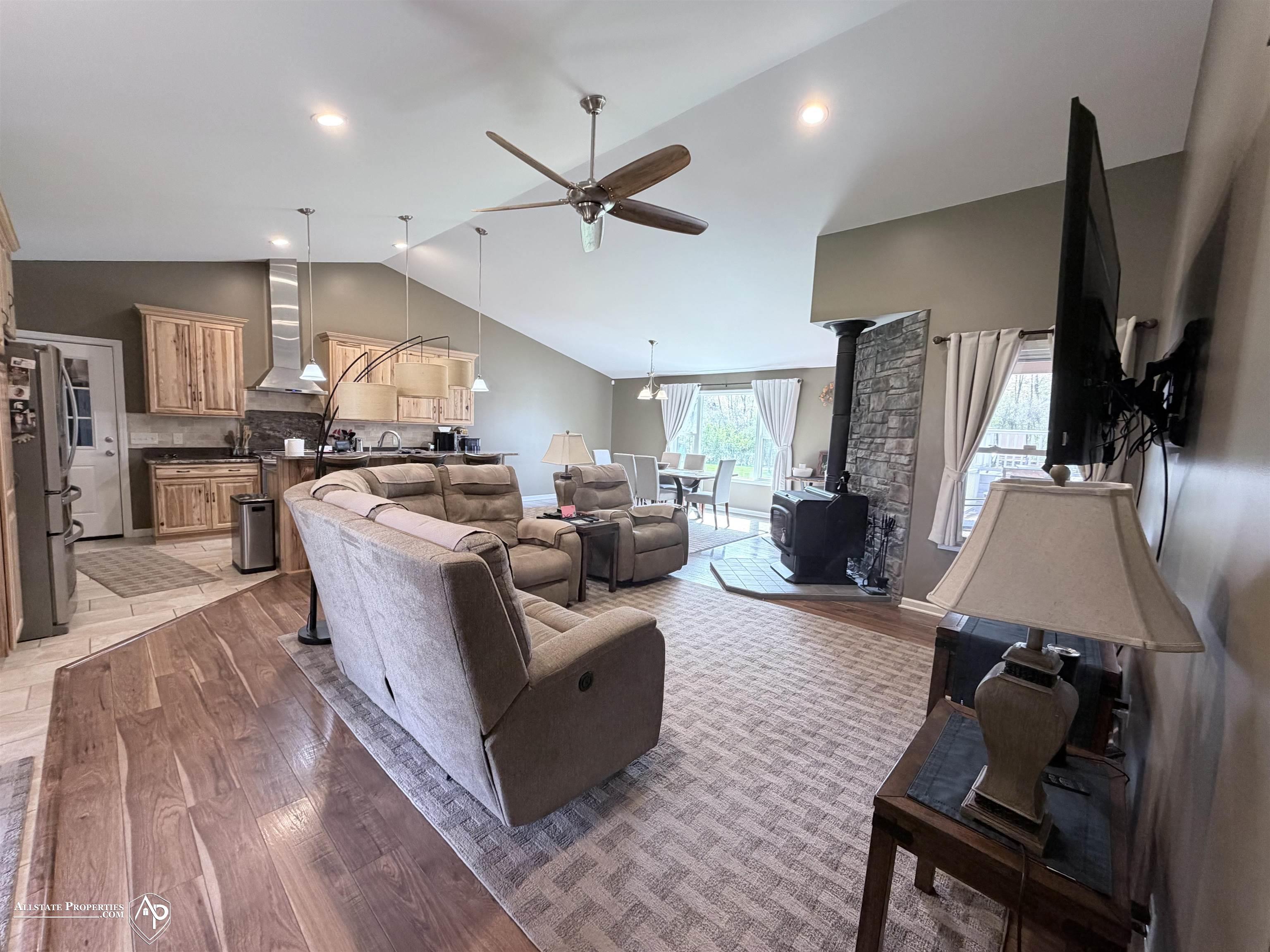One-of-a-kind, custom-built, one-owner home set on 10.04 private acres, reflecting exceptional pride of ownership. Offering approximately 1,700 sq ft, this well-maintained residence features 3 bedrooms and 2 full baths. A welcoming foyer opens to a cozy living room with a wood-burning fireplace highlighted by a striking rock accent wall. The thoughtfully designed kitchen showcases soft-close hickory cabinetry, granite countertops, a spacious pantry, wine cabinet, and stainless steel appliances. The primary suite offers a generous walk-in closet and a private en-suite bath complete with heated floors & towel rack, and dual sinks. A functional layout includes a mudroom and separate laundry room for added convenience. Sliding glass doors from both the living room and primary bedroom lead to the expansive deck. Exterior amenities are equally impressive with a versatile 3-car garage setup, including a 30x30 heated garage with 12’ ceilings, EV charging capability, hoist, and upper storage with lift. Additional outbuildings include a 16x44 front garage and a 34x20 rear garage. The home is set approximately 650 feet off the road, accessed by a long private driveway with an electric gate for added privacy. Enjoy outdoor living on the 24x35 deck featuring a gazebo, electricity, and gas hookup, along with a 15x30 above-ground pool with automatic cleaner and included accessories, ideal for entertaining. Additional highlights include leaf guards with warranty and a deer blind. Mechanical features include a 268-ft deep well, septic pump replaced in Summer 2025, two backup sump pumps, whole-house generator, 200-amp service to the home and 190-amp service to the garage. The crawl space offers a cement floor with rolling carts for easy access. Two garage door openers with key fob access are also included. Sale includes all appliances, two safes (one large and one small), hoist lift, garage refrigerator, stand-up freezer, crawl space rollers, and deck heater. A rare opportunity combining privacy, functionality, and extensive upgrades, this exceptional property is a must-see!