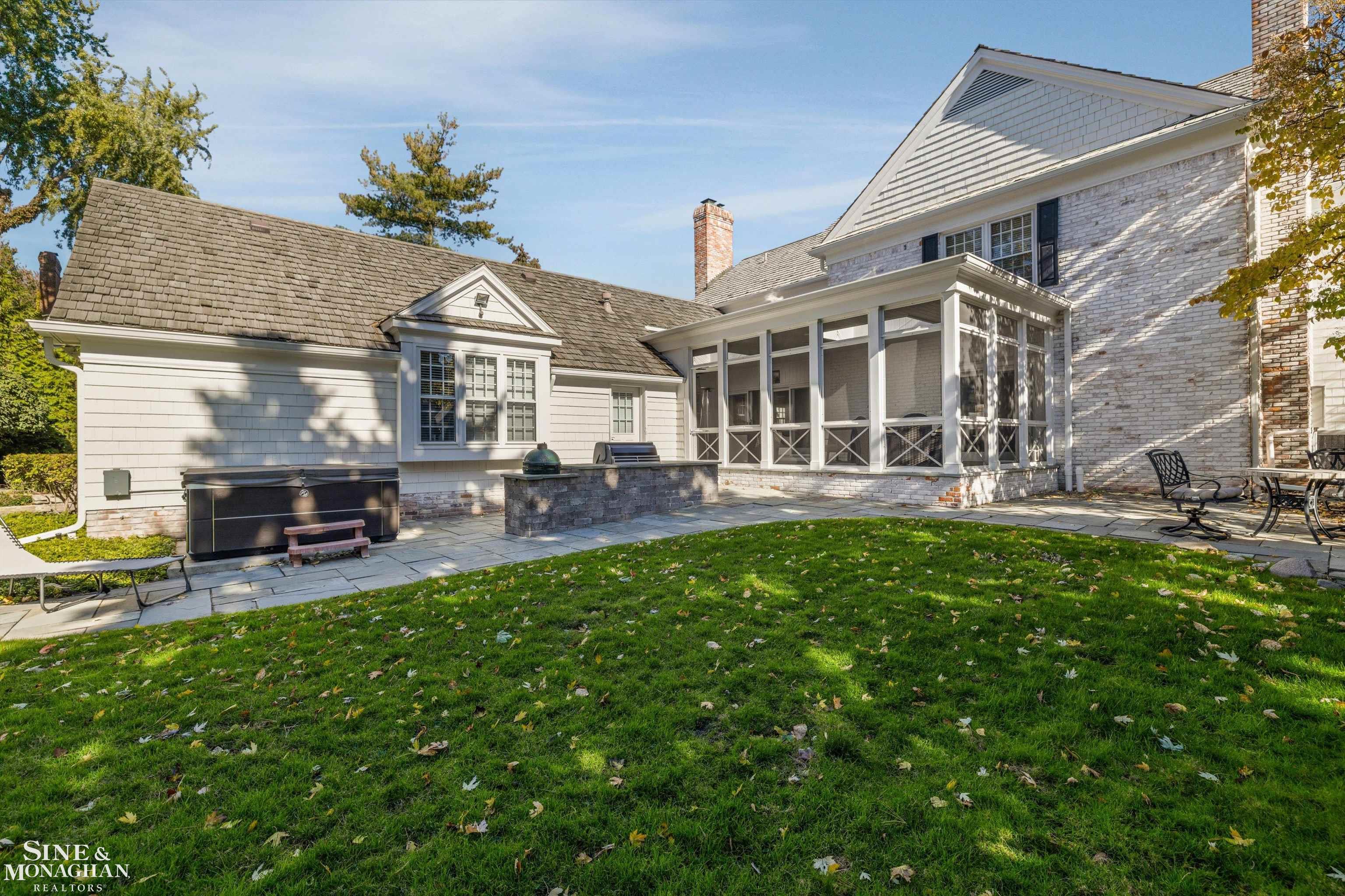 Set on one of Grosse Pointe City’s most picturesque tree-lined streets, 11 Dodge Place blends timeless architecture with modern comfort just steps from Lake St. Clair. This five-bedroom, 3.2-bath Colonial estate spans nearly 5,700 square feet of finely crafted living space designed for both gracious entertaining and relaxed family living. At its heart is a custom chef’s kitchen with a large island with seating, premium appliances, and an adjoining dining area and sitting space with its own fireplace—a warm gathering spot where family naturally comes together. The living room and family room each feature a fireplace, offering inviting spaces for conversation, celebration, or quiet evenings in, while the den provides a comfortable setting for work or reading. Upstairs, the primary suite is a true retreat with its private fireplace, generous closets, and a spa-inspired full bath. Four additional spacious bedrooms share two beautifully updated full baths, each designed with comfort and style in mind. A bonus sitting room on the second floor adds flexibility for reading, studying, or play. The finished basement expands the living area with a full kitchen, bath, workout room, and sauna—perfect for wellness, recreation, or guest accommodations. Outdoors, a screened-in porch opens to a stone patio surrounded by mature landscaping, while a brick-paver driveway leads to a three-car heated garage. Additional highlights include a whole-house generator, newer furnaces and air conditioners, and a newer cedar roof. With beautiful original hardwood floors, modern updates, and close proximity to The Hill’s boutiques, restaurants, parks, and top-rated schools, this home captures the enduring grace and community spirit that define Grosse Pointe real estate. Imagine yourself living here—schedule your private tour today!