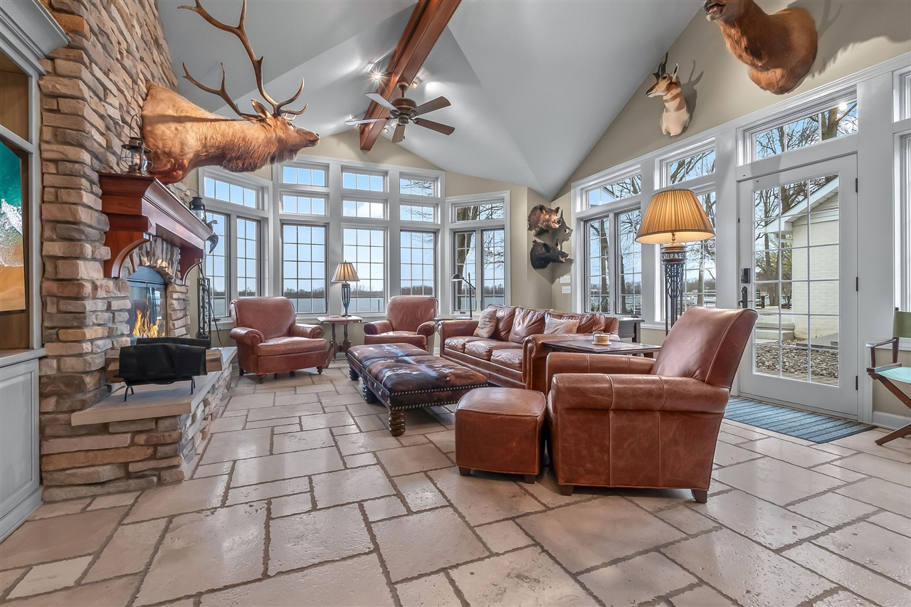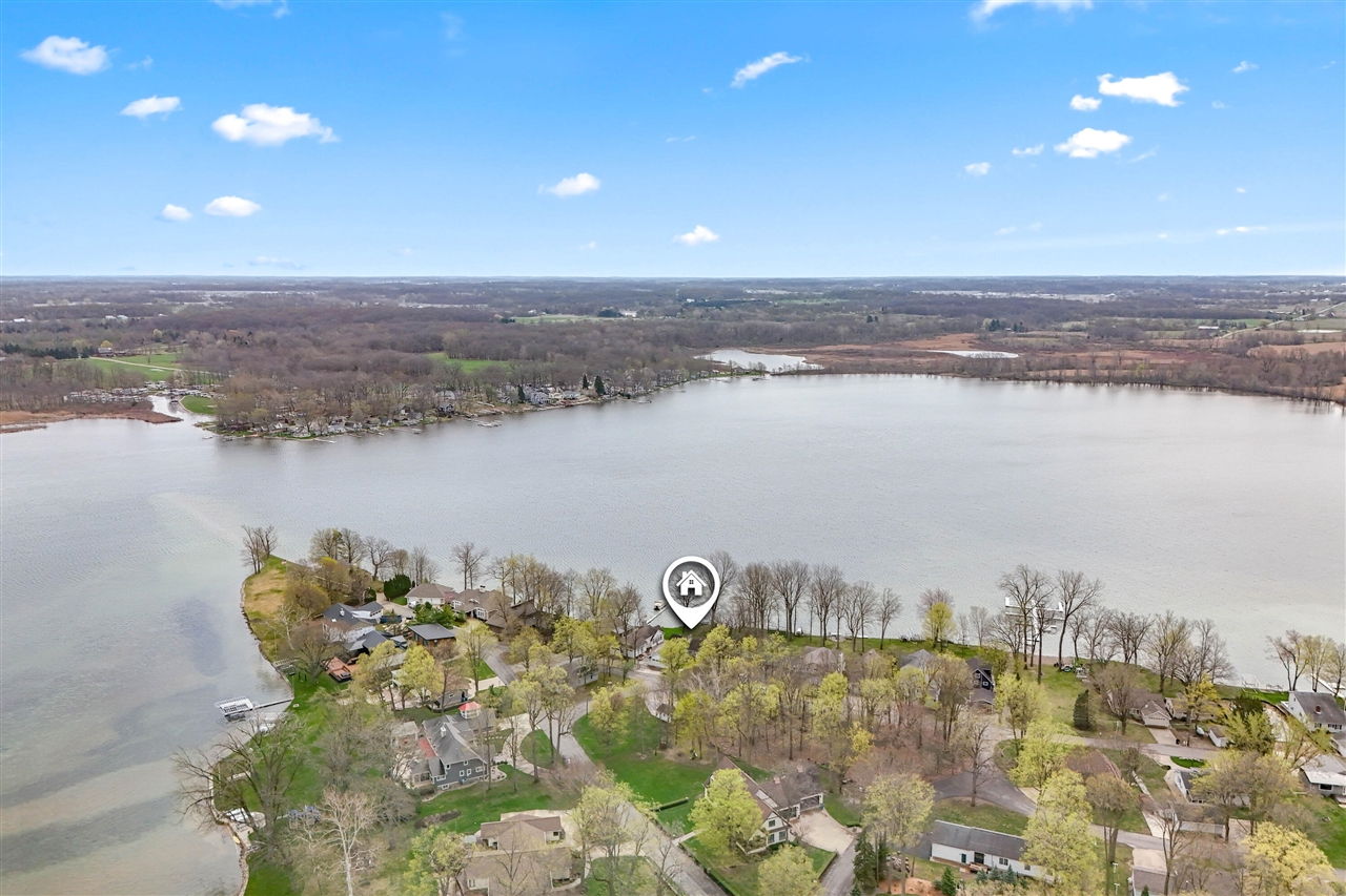 Waterfront living at its finest! This rare opportunity on highly desirable Coldwater Lake offers not just one, but two homes--a main residence and a separate guest house--plus an additional back lot with garage, all with 135 feet of private water frontage. Properties on the Island seldom hit the market, making this your chance to secure the ultimate summer retreat. Step inside the main home and you're immediately welcomed by expansive windows that showcase breathtaking water views, soaring cathedral ceilings, a cozy fireplace, and an open-concept kitchen, dining, and living area designed for both comfort and entertaining. The kitchen has stainless steel appliances and a center island with eating space. 4 spacious bedrooms and 3 full baths. The primary with ensuite, offers a walk-in closet along with a secondary closet with organizers, plenty of natural light and french doors leading to the patio. You'll find a designated desk/office space, and several built-ins throughout the home.