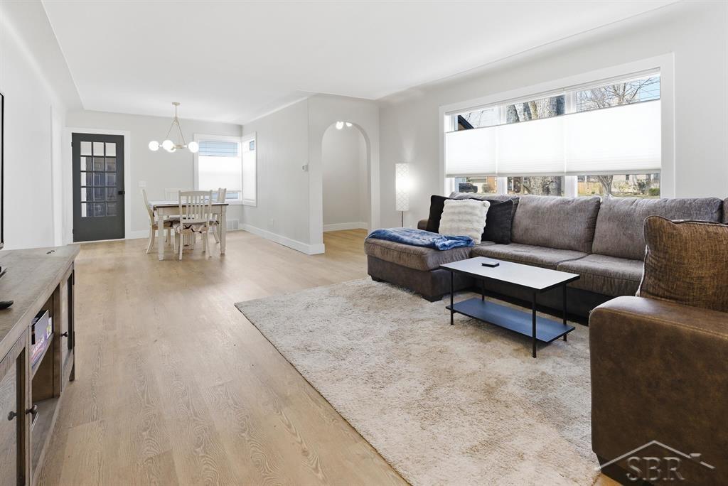 Welcome to this beautiful ranch home on Sugnet, fully remodeled in 2023.  This 3-bedroom, 1-bath home offers 1,279 square feet of thoughtfully updated main floor living space, blending modern upgrades with timeless character. Completely renovated in 2023, the stunning kitchen is a true centerpiece featuring quartz countertops, custom cabinetry, a stylish tile backsplash, updated lighting, and a full suite of GE appliances. Just off the kitchen, the charming eat-in breakfast nook boasts built-in seating and sun-filled windows, creating the perfect spot to start your day. Each of the three bedrooms offers sculpted carpeting, step-in closets, and modern lighting for comfort and convenience. The fully renovated bathroom showcases ceramic tile, a solid surface countertop, and carefully selected fixtures that reflect the home’s original era charm. Entertain with ease in the spacious open living and dining area, highlighted by elegant cove ceilings and beautifully restored original brass and glass door handles that add a touch of vintage sophistication. A first-floor laundry and mudroom provide additional storage and everyday practicality. Major updates include a new furnace, windows, and siding in 2023, along with a new vinyl privacy fence and fresh landscaping completed in 2024, giving you peace of mind and true move-in-ready convenience. This turnkey home perfectly combines modern living with classic details, is ready and waiting for its next owner to enjoy!