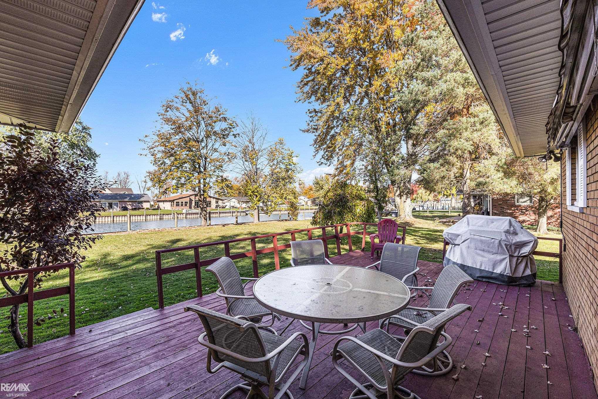 Turnkey, fully furnished waterfront living on a rare double lot! This beautifully maintained 3-bedroom, 1.5-bath home offers 1,574 sq ft of comfortable living on a deep, wide, free-flowing canal just minutes from the North Channel and Lake St. Clair. Enjoy the exceptional advantage of a DOUBLE LOT with ample space for outdoor entertaining and boat dockage, including a large grandfathered boathouse/storage building — a true rarity. Inside, the home is move-in ready with new luxury vinyl plank flooring in the main living areas and freshly refinished hardwood floors in the bedrooms. Highlights include a cozy fireplace, updated kitchen and baths, great water views, and an attached 2-car garage. A brand-new roof adds peace of mind. Ideal as a year-round residence or waterfront getaway, this property offers immediate enjoyment, low-maintenance living, and an unbeatable boating lifestyle — all furnishings included.